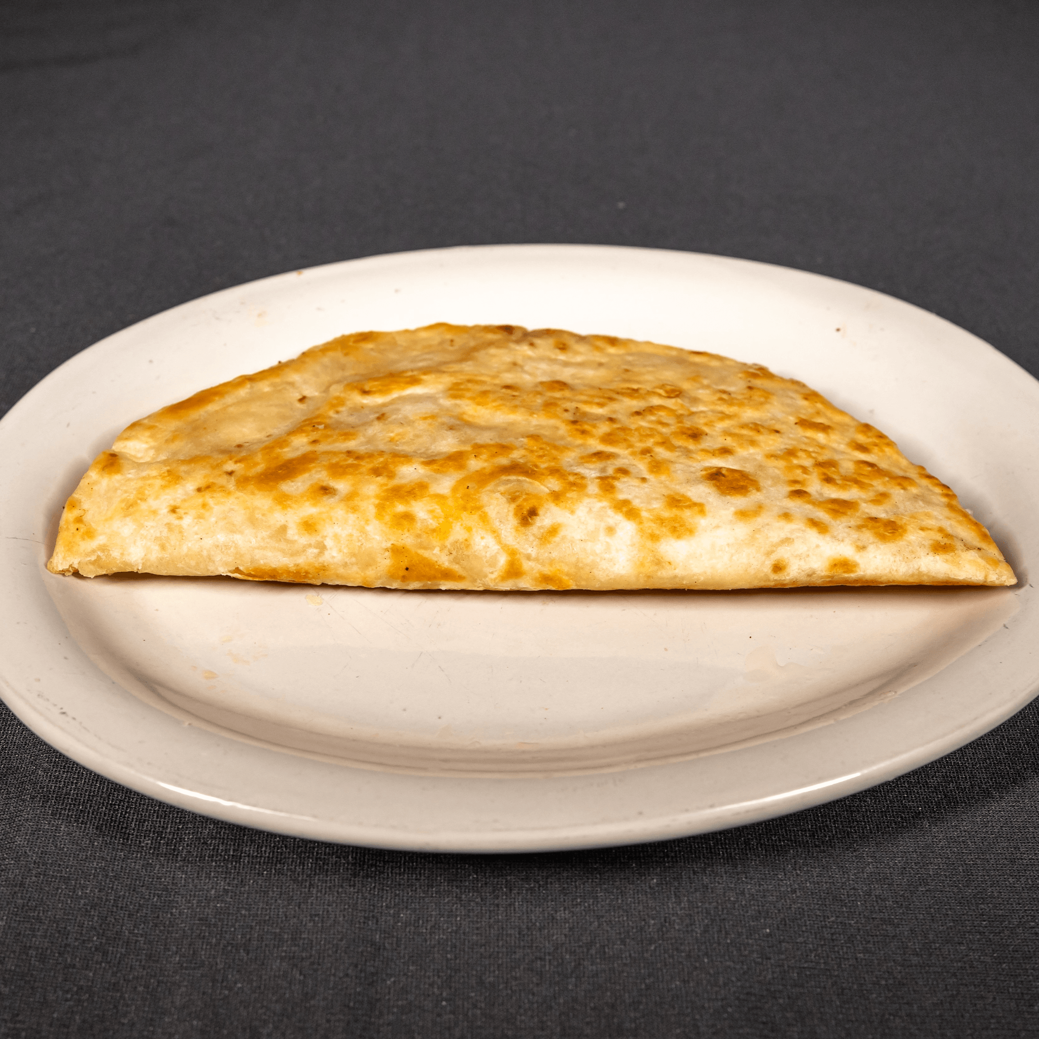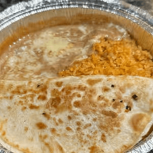 One quesadilla, served with rice and beans